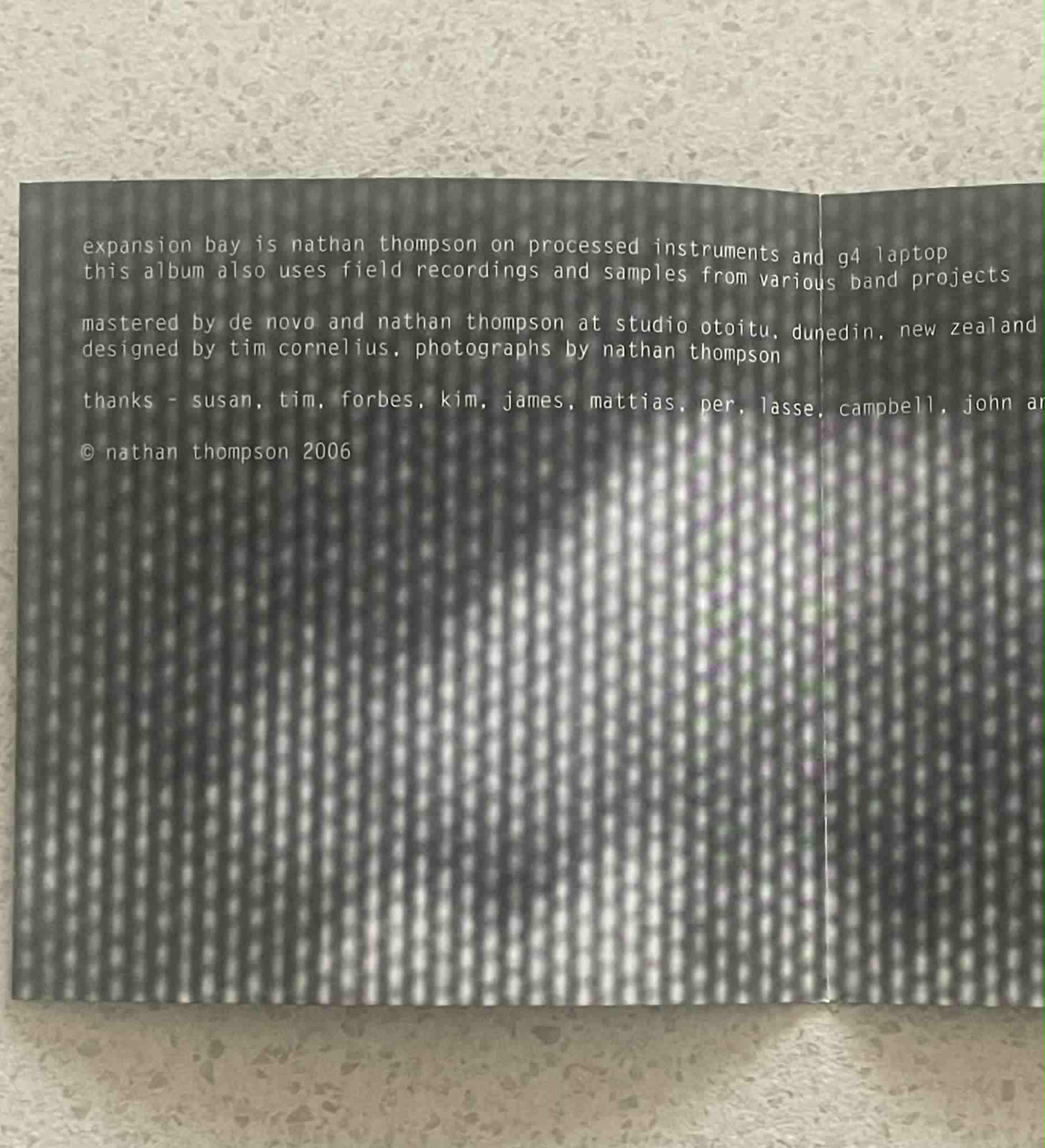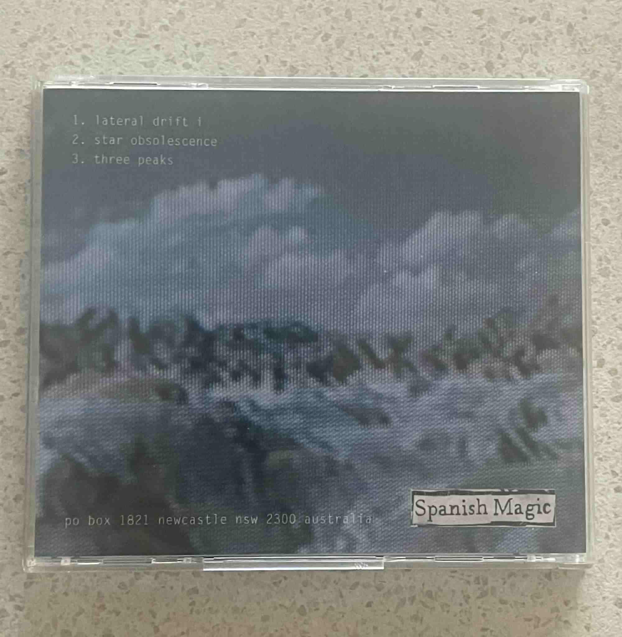 Nathan Thompson from Dunedin's SANDOZ LAB TECHNICIANS. Dead stock from SPANISH MAGIC, release from 2006. 3 tracks. Psychedelic electronics, loops, processed instruments and computer. Every component layered, audible and creeping. Humid, grainy and progressive, hints of what may come next and retracted before saturation. Lush synthesiser patches with samples, certainly NOT wall paper or new age. Alien and charming like the standard Antipodean eccentrics exploring repetition. To contradict that point, reminds me of Tom Recchion works from this same period, but of course, a member of Sandoz is in a world of their own. Really like the third and final track 'Three Peaks', subtly chaotic and whimsical, sounds like wedding bells ominously telling you this was a bad move. A solid trip for a tenner.