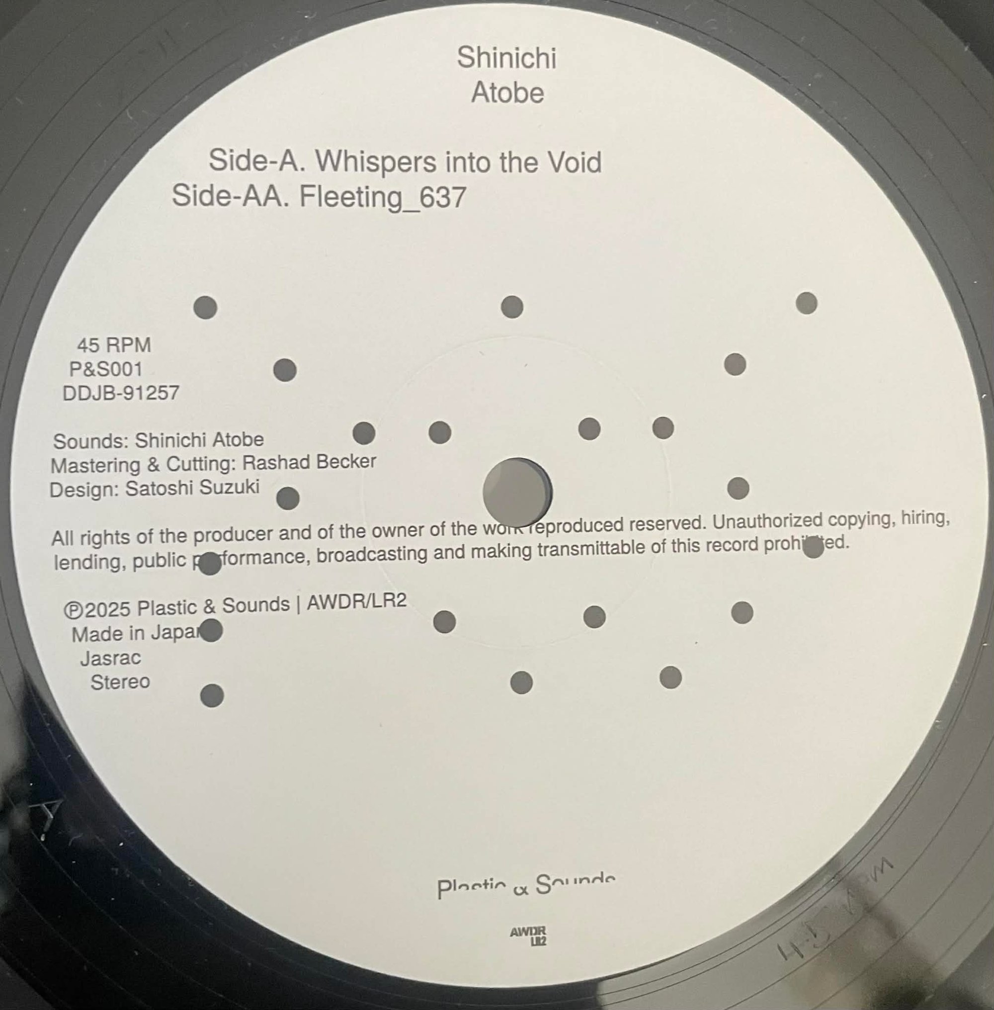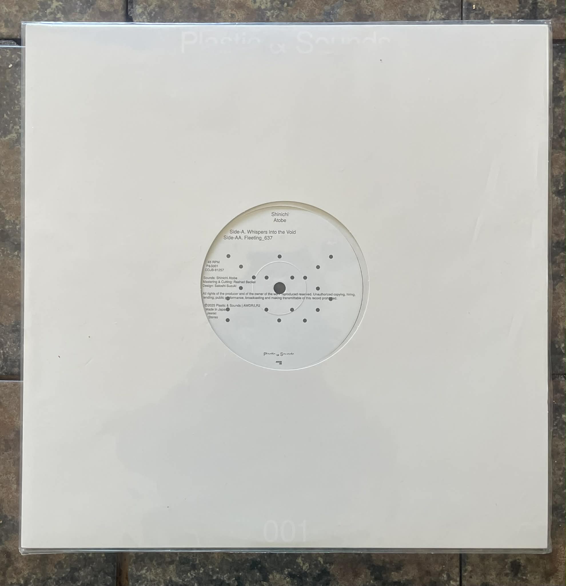 After a string of releases on Demdike Stare, this is his first release on Shinichi Adobe's own label PLASTIC & SOUNDS. 2 crisp and moody tracks. Side a is a cloudy and delicate warmer, gorgeous keys dropping in at the right time, moving and radiant. Side B is a spacey and terrestrial burner, atmospheric, humid and psychedelic. There is no origins which Shinichi owes direct homage to, it’s a signature sound of his own.