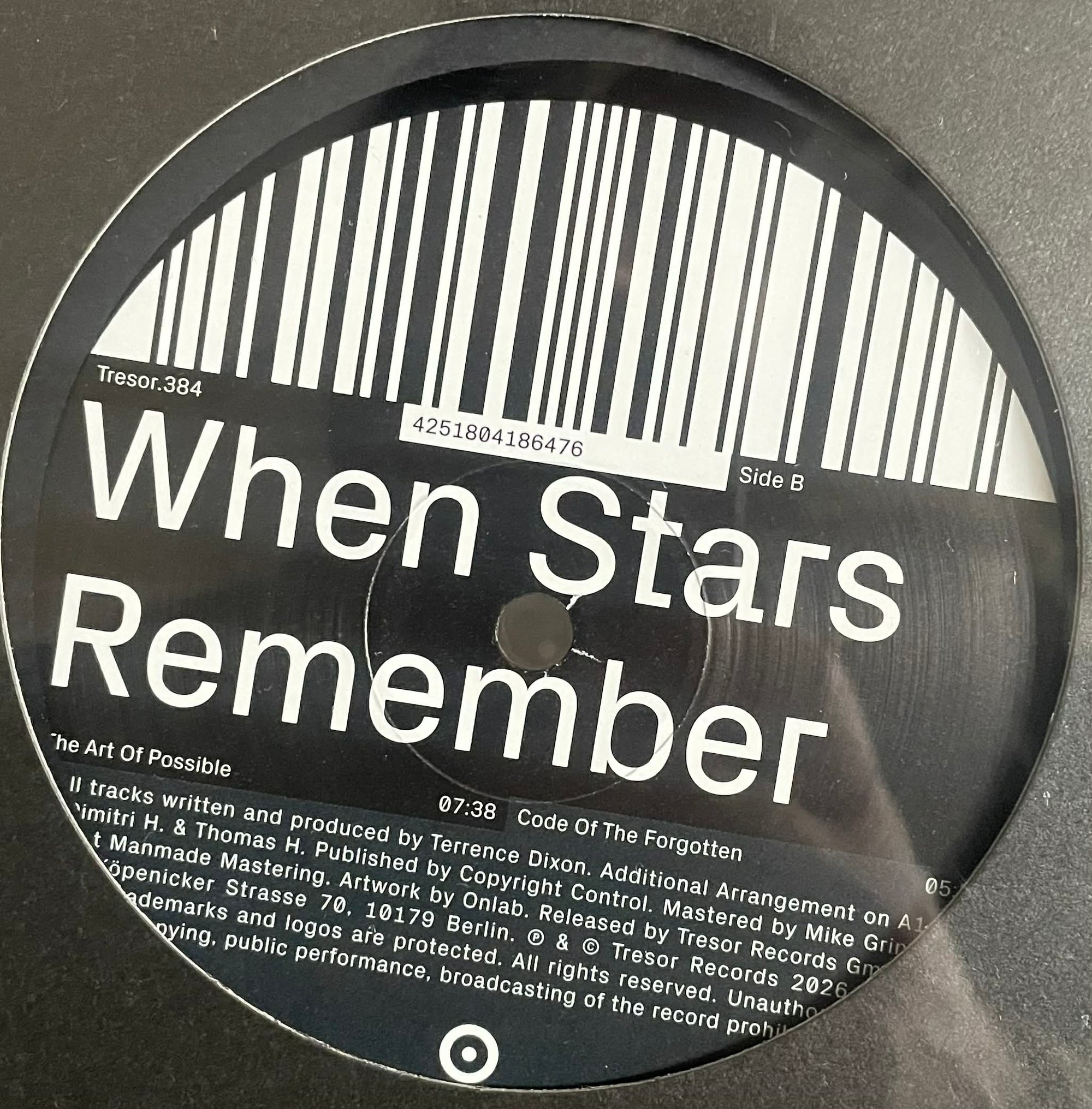 The first TRESOR release of 2026, a slick minimal offering of this legendary Detroit producer. Deep, meditative, cosmic arpeggios, typically foreboding dark techno. The paranoia we obtain as our lives are dominated by tech companies strangling our communication and actions, can't help to think music like this that swallows us makes us think of this perspective - for better or worse. Mesmerising and menacing. 4 tracks!